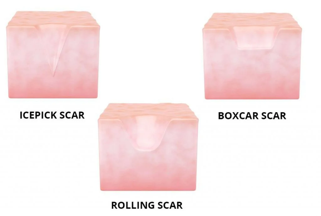 Ice pick – deep, narrow, pitted scars that resemble holes in the skin