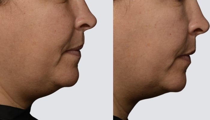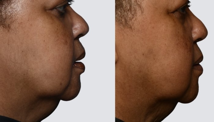 Submental fat is fat below the chin, which from the front can appear as a “double chin.” While this can sometimes be attributed to weight gain, it is also genetic for many people to have this excess fat in the skin and neck. Submental fat can often be resistant to diet and exercise, leading patients to seek alternative means of ridding themselves of this stubborn fat.